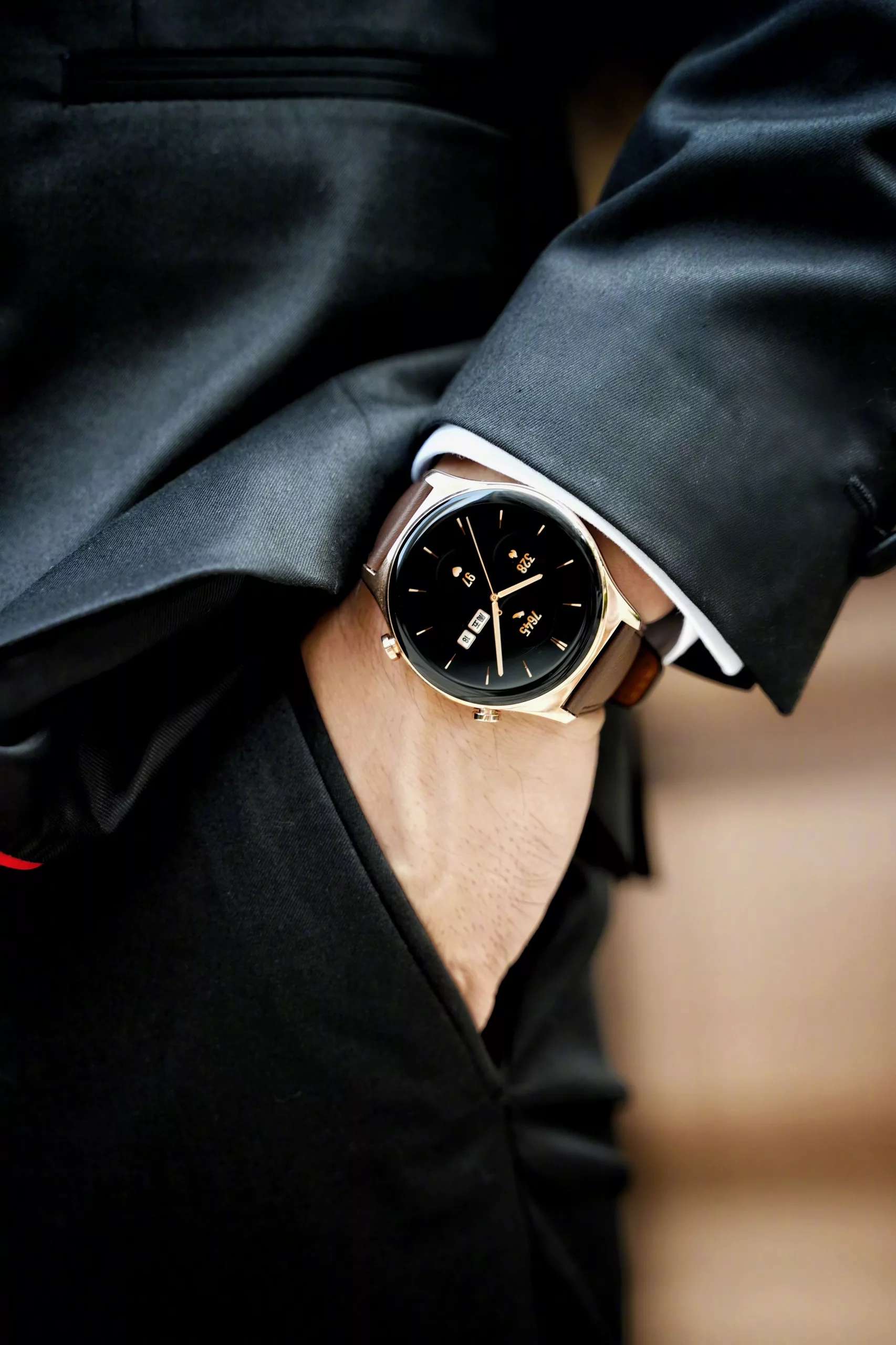 The smartwatch comes with a circular dial. We will have to wait till it is fully announced in September (expected) to know the screen size and all that.