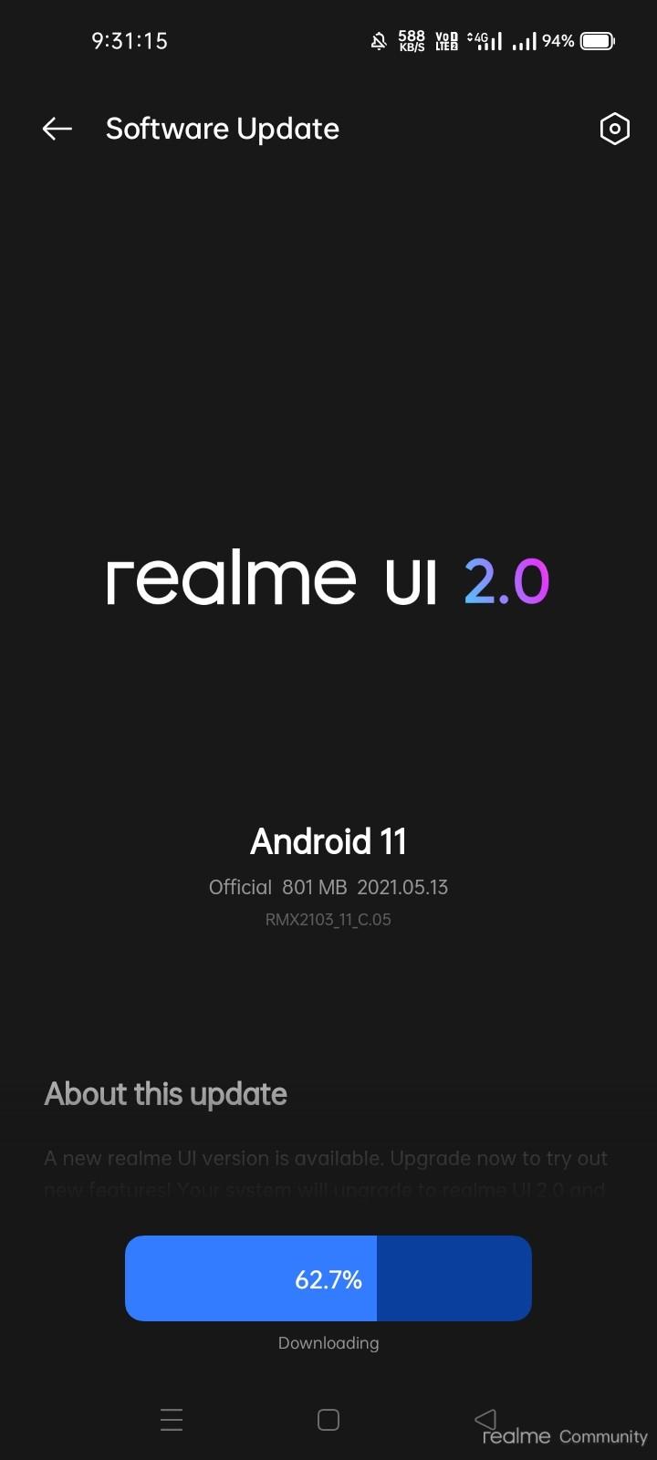 The update has an RMX2103_11_C.05 firmware version and has a file size of 801MB. It comes with an optimised gaming experience through the inbuilt Immersive mode. There is also an ability to customise Game Assistant on the smartphone. The software update also comes with an optimised permission manager that lets users choose the Allow only once option for sensitive permissions.