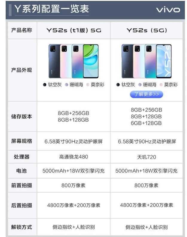 Y52s (t1 edition) comes with a 6.58inches IPS LCD display with a resolution of 1080 x 2408 pixels. Under the hood, it is powered by the Snapdragon 480 5G chipset which has an Octa-core processor clocked at 2.0GHz, paired with an Adreno 619 GPU.