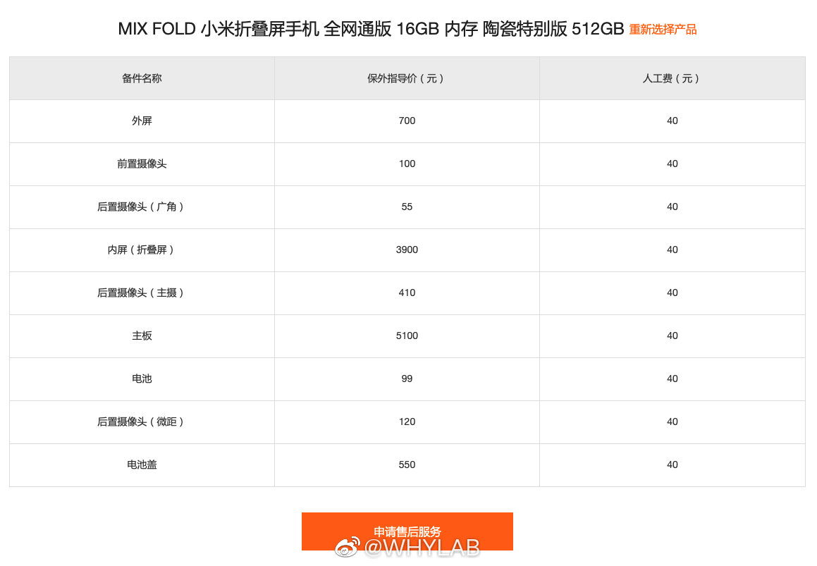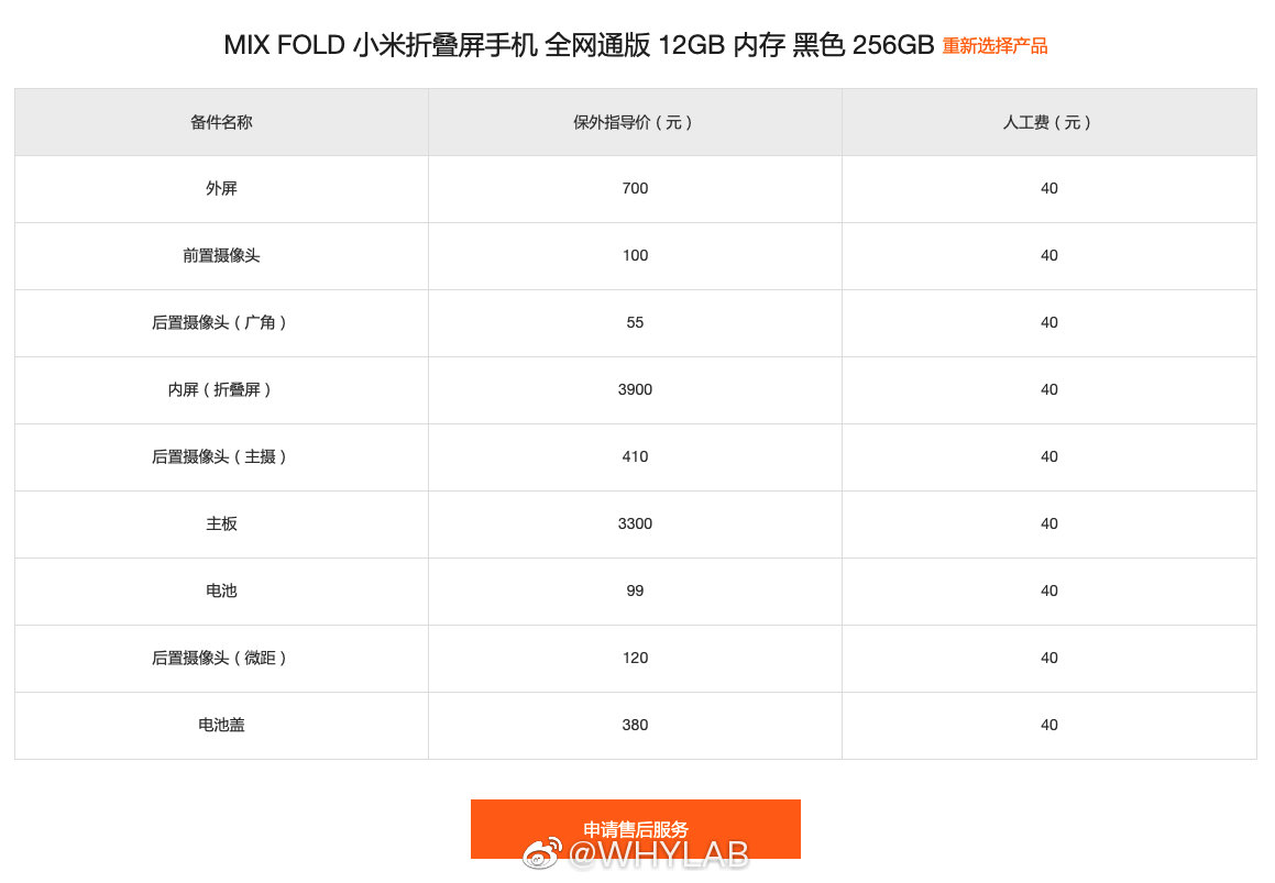 Xiaomi Mi MIX FOLD’s warranty repair costs has been announced